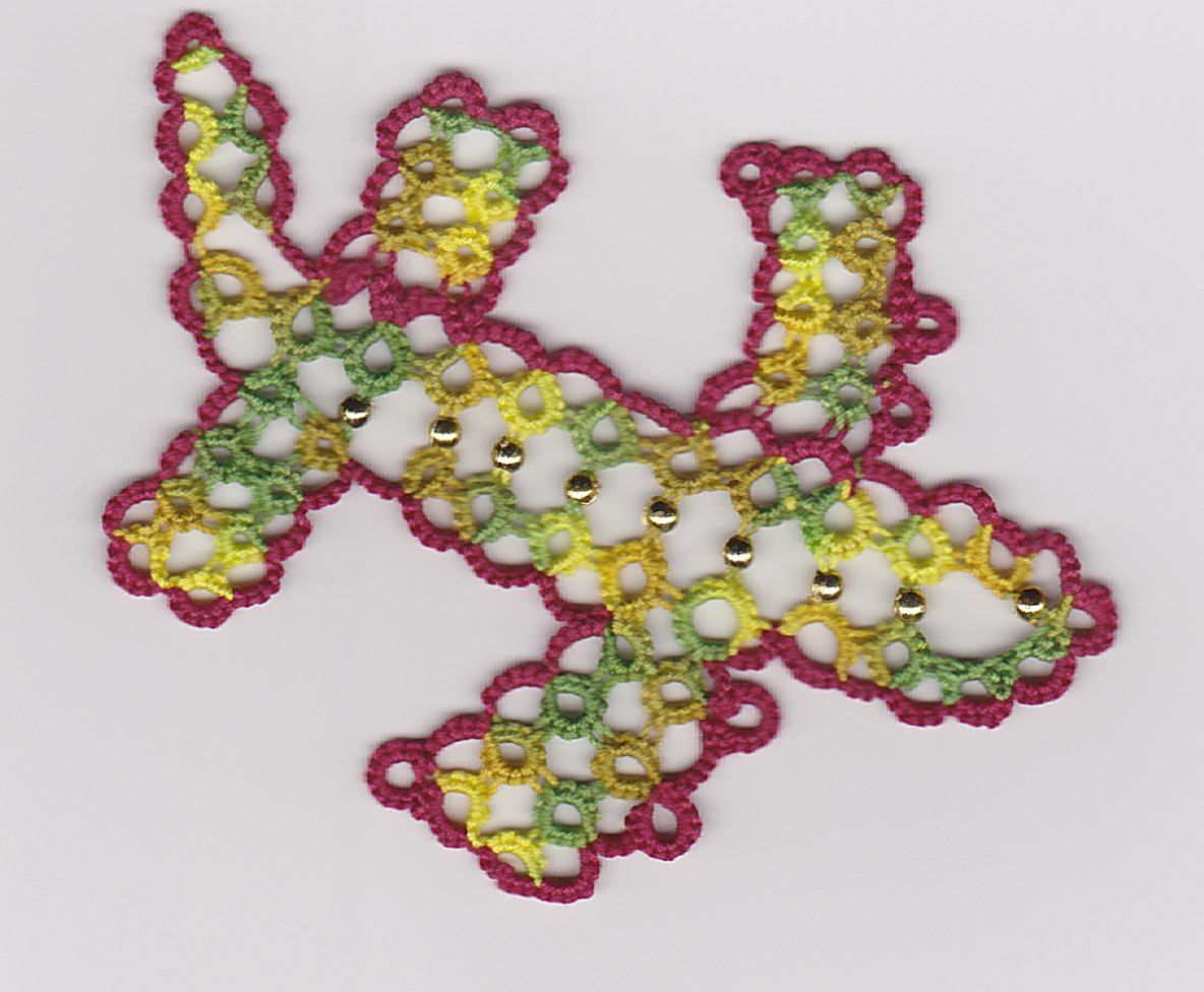 "It was absolutely fun to keep on guessing...I enjoyed the transformation of the pattern from caterpillar to airplane. I have blogged about the tatting journey here. Please feel free to take the image of the finished airplane to post it in your blog. Thank you so much for organising TIAS..."