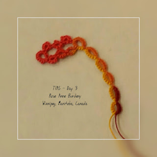 "Waah! The colors on my two shuttles coincided so I didn't get the lovely two tone effect you usually get with mixing flipped and unflipped stitches.