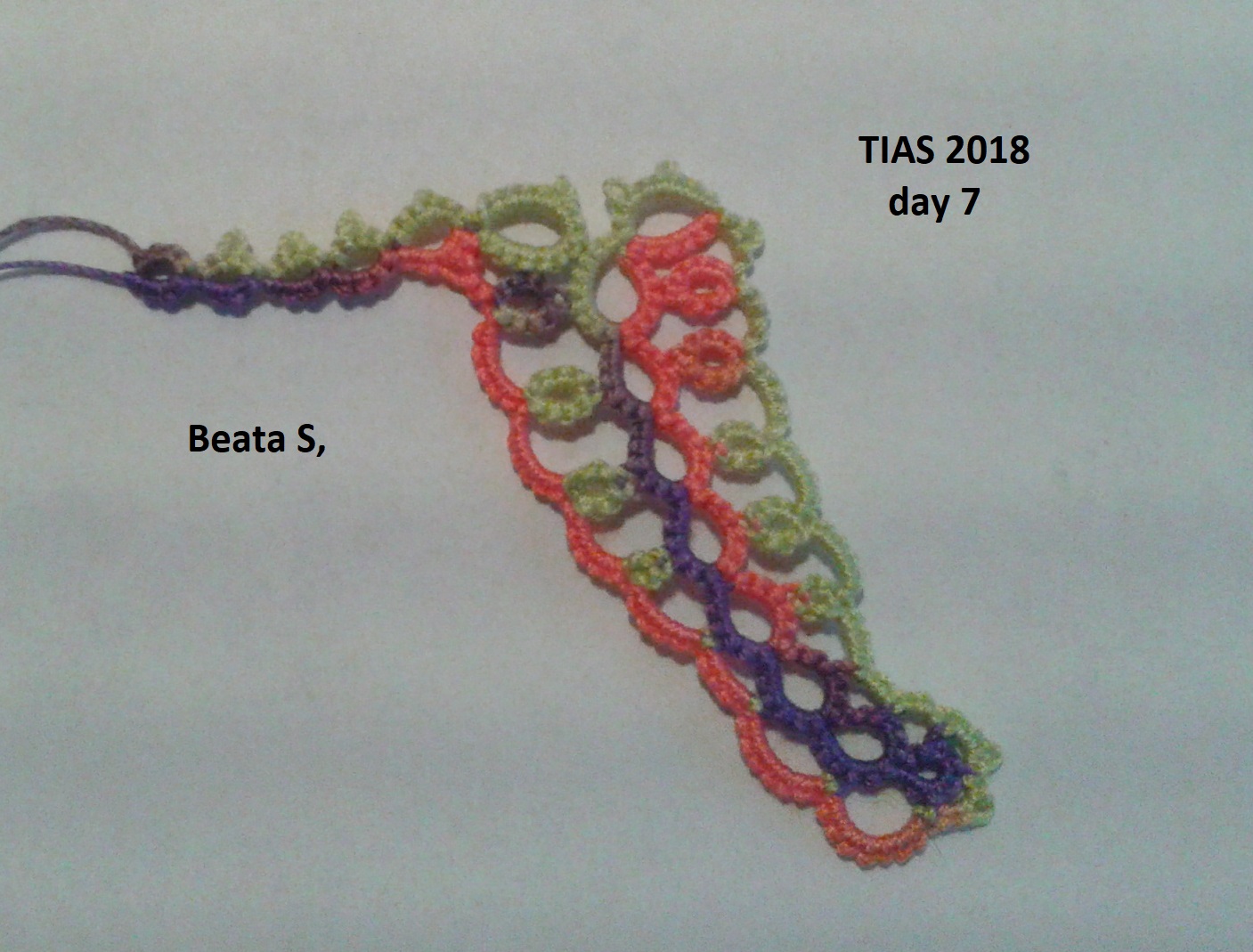 "Dear Jane, just re-started day 1-6 and added day7. Love the colours a way more, the tension is quite better and did not make the same mistakes as before! Now I am thinking about hyacinths - just bought some so may be I am also tatting one?