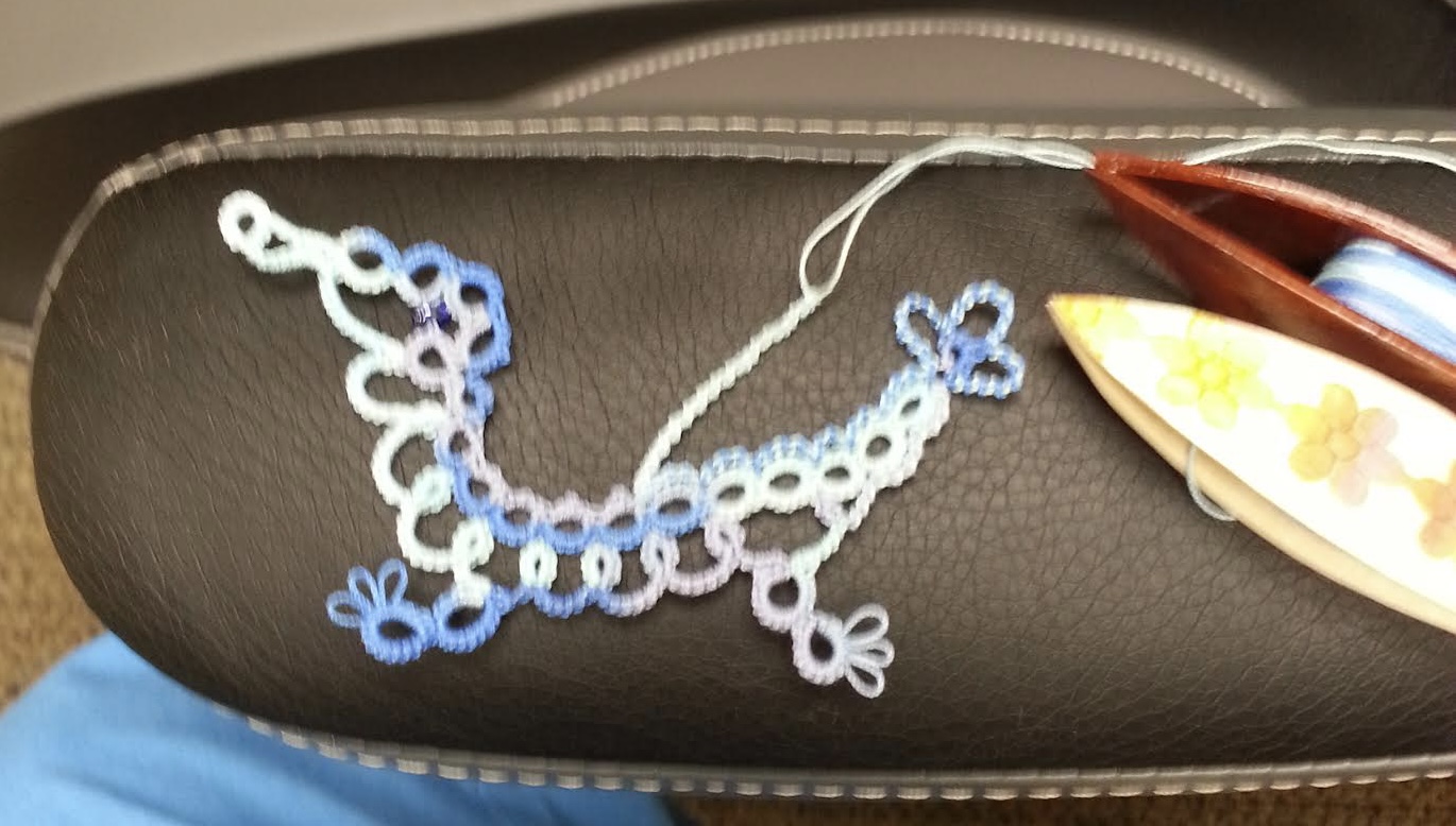 “It still looks like a crocodile/alligator, but with chain of 15 I might have to move to the dragon camp. I guess I’ll have to wait and see. Not just a tatting project but also a patience teaching project.”